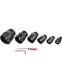 В комплекте предусмотрены насадки для работы с трубами разных диаметров - 20, 25, 32, 40, 50 и 63 миллиметров.