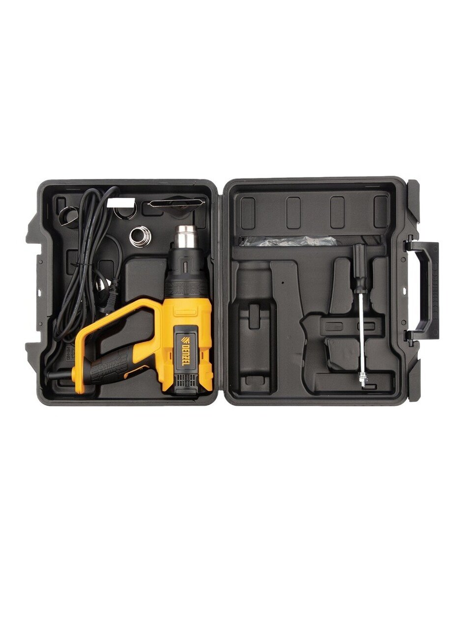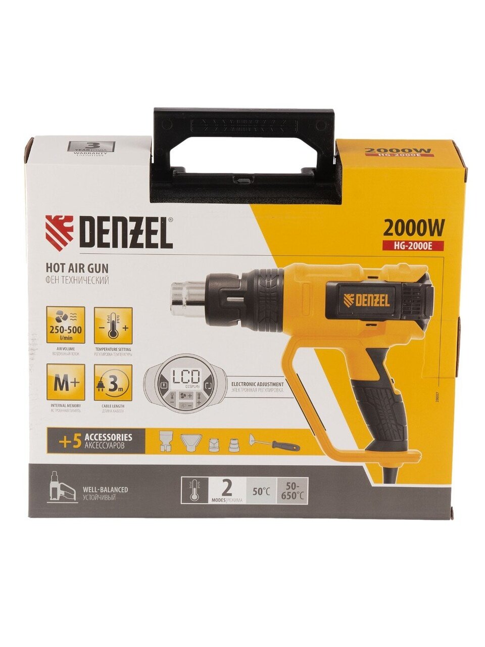 Технический фен Denzel HG-2000E — это мощный и универсальный инструмент, который идеально подходит для профессионалов. Он оснащён двумя режимами работы и ЖК-дисплеем, имеет мощность 2000 Вт. Этот фен используется для нагрева и сушки различных материалов и поверхностей, таких как лакокрасочные покрытия, линолеум, плитка, металл и пластик. Кроме того, он может быть использован для разморозки труб и выполнения других задач в бытовых условиях и на строительных площадках.