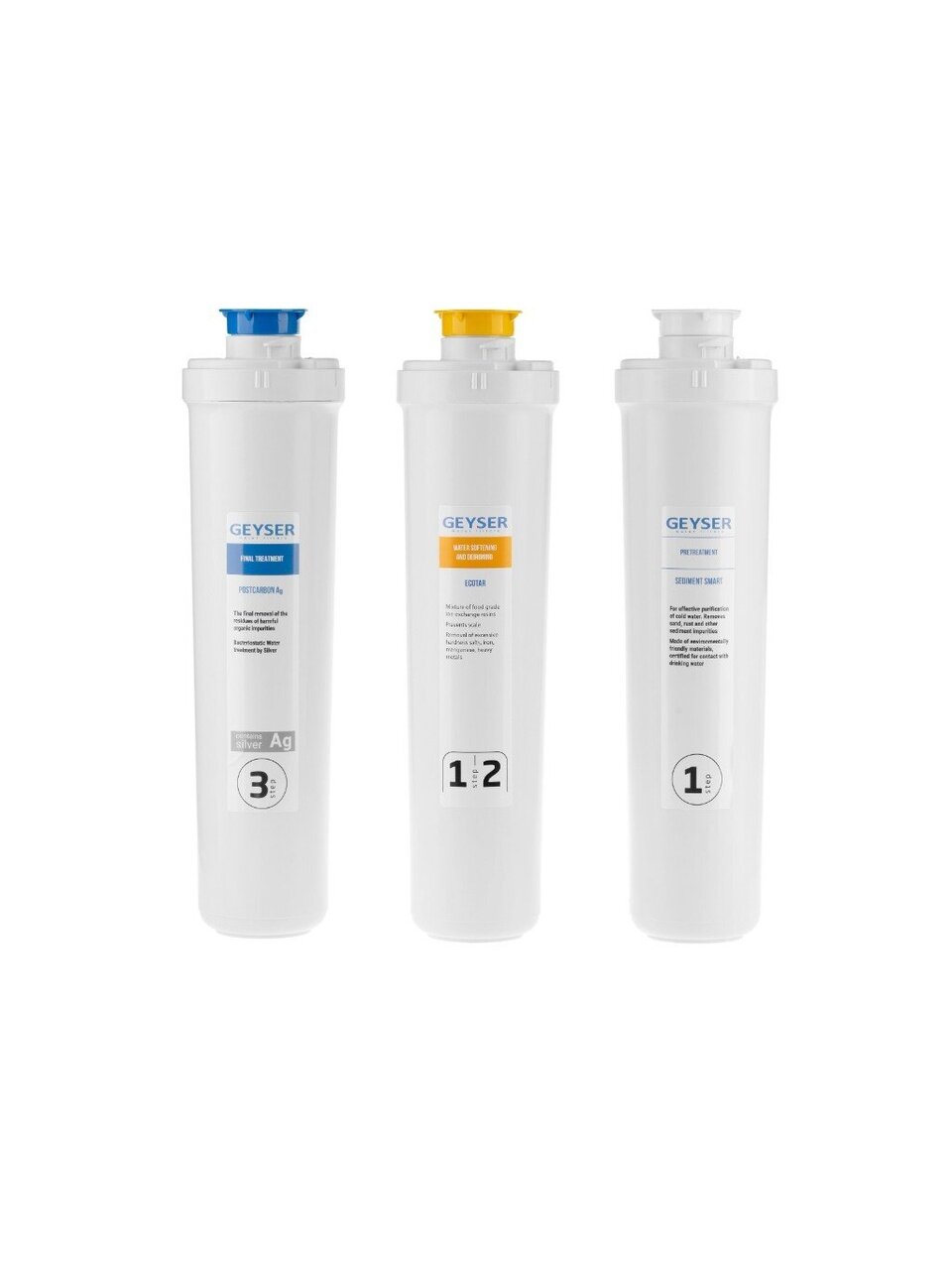 С комплектом сменных картриджей Гейзер Вы поразитесь, насколько вкусной может быть обычная питьевая вода. Кроме того, набор заботится о Вашем здоровье, удаляя из воды все вредоносные вещества. И конечно же, сменные картриджи раз и навсегда решают проблему с накипью. Вам больше не придется переживать, что любимый чайник, утюг или кофемашина выйдут из строя.