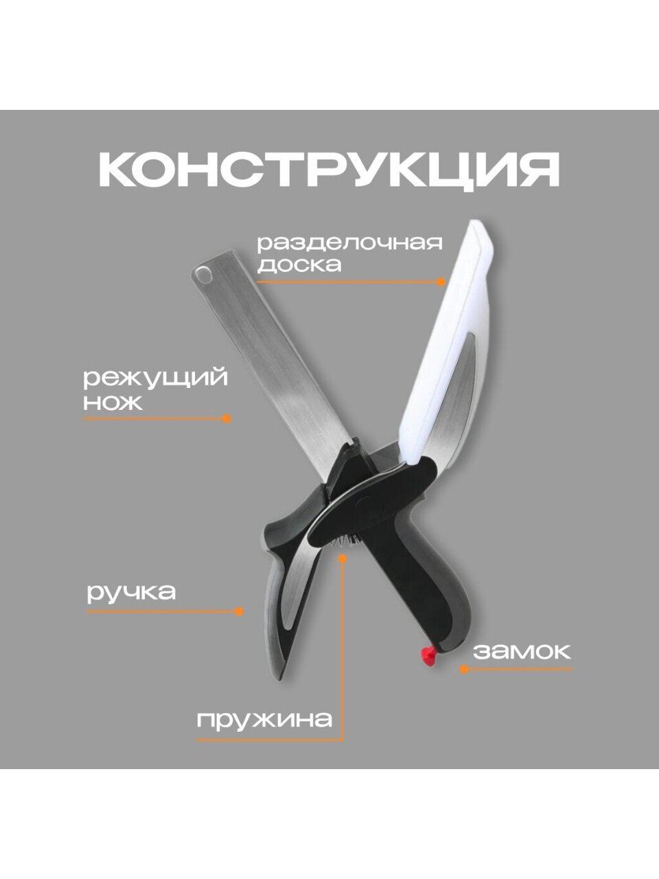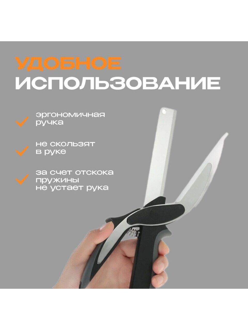 Для удобства эксплуатации на одном из лезвий ножниц расположена белая насадка (не съемная), которая выполняет роль разделочной доски. Благодаря ей представленными ножницами возможно пользоваться без поиска дополнительной поверхности.