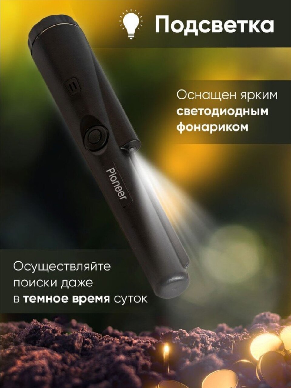 Встроенный светодиодный фонарик позволяет проводить поиск в темноте или условиях низкой освещенности.