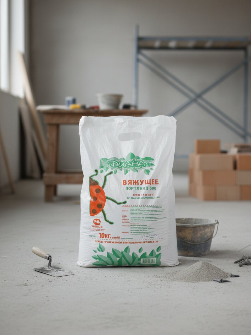 Сухая смесь Диана Цем-500 10 кг — оптимальное вяжущее для прочных работ: быстрое схватывание, экономия времени и уверенность в результате.