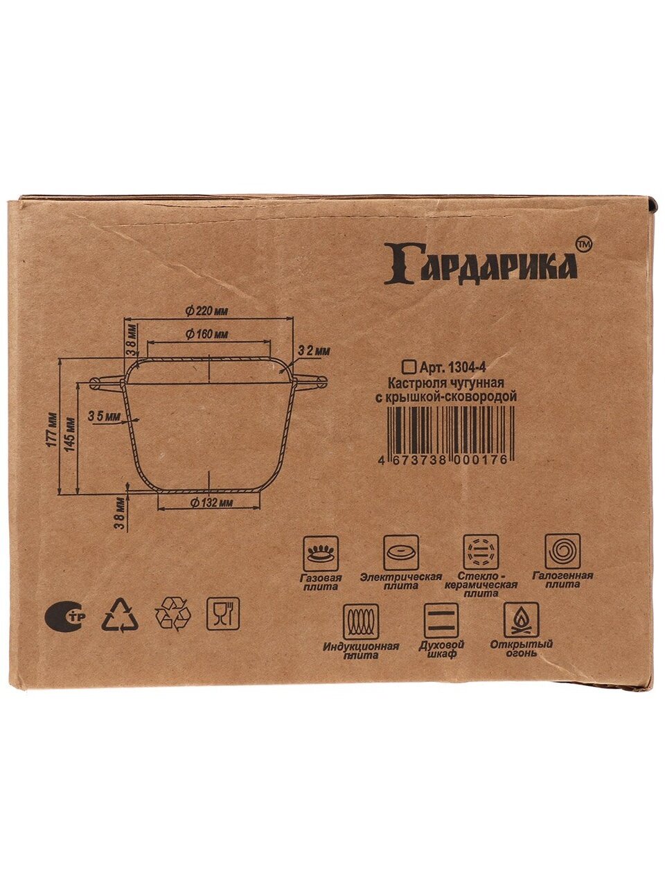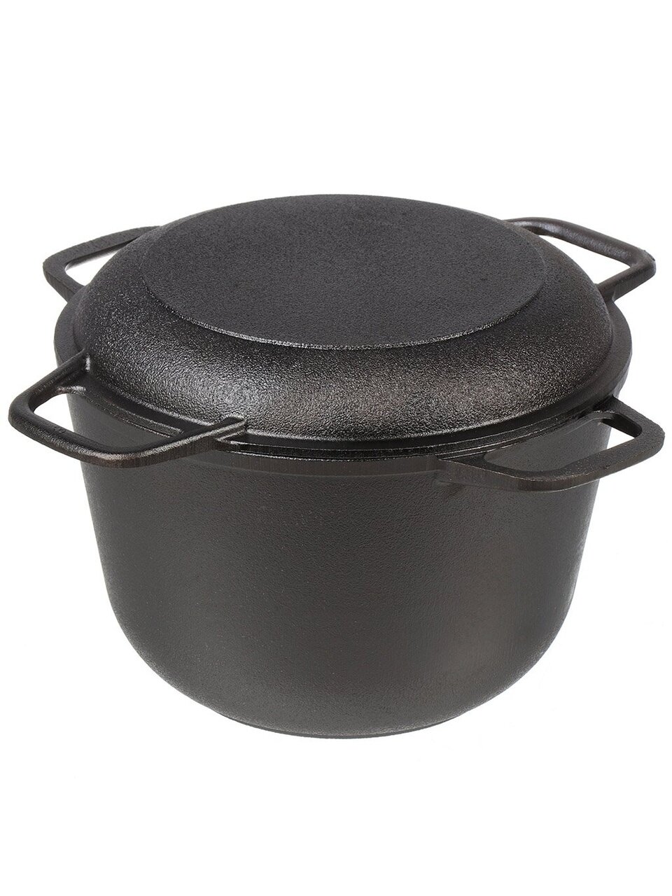 Чугунная кастрюля 4 л Гардарика 1304-4 с крышкой-сковородой: для индукции, плова и тушения — долговечность на годы, выгодно для дома и дачи