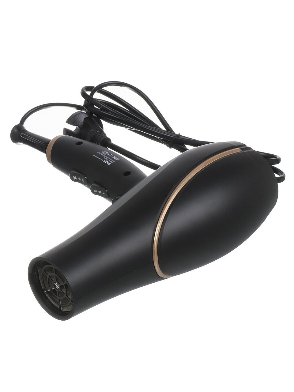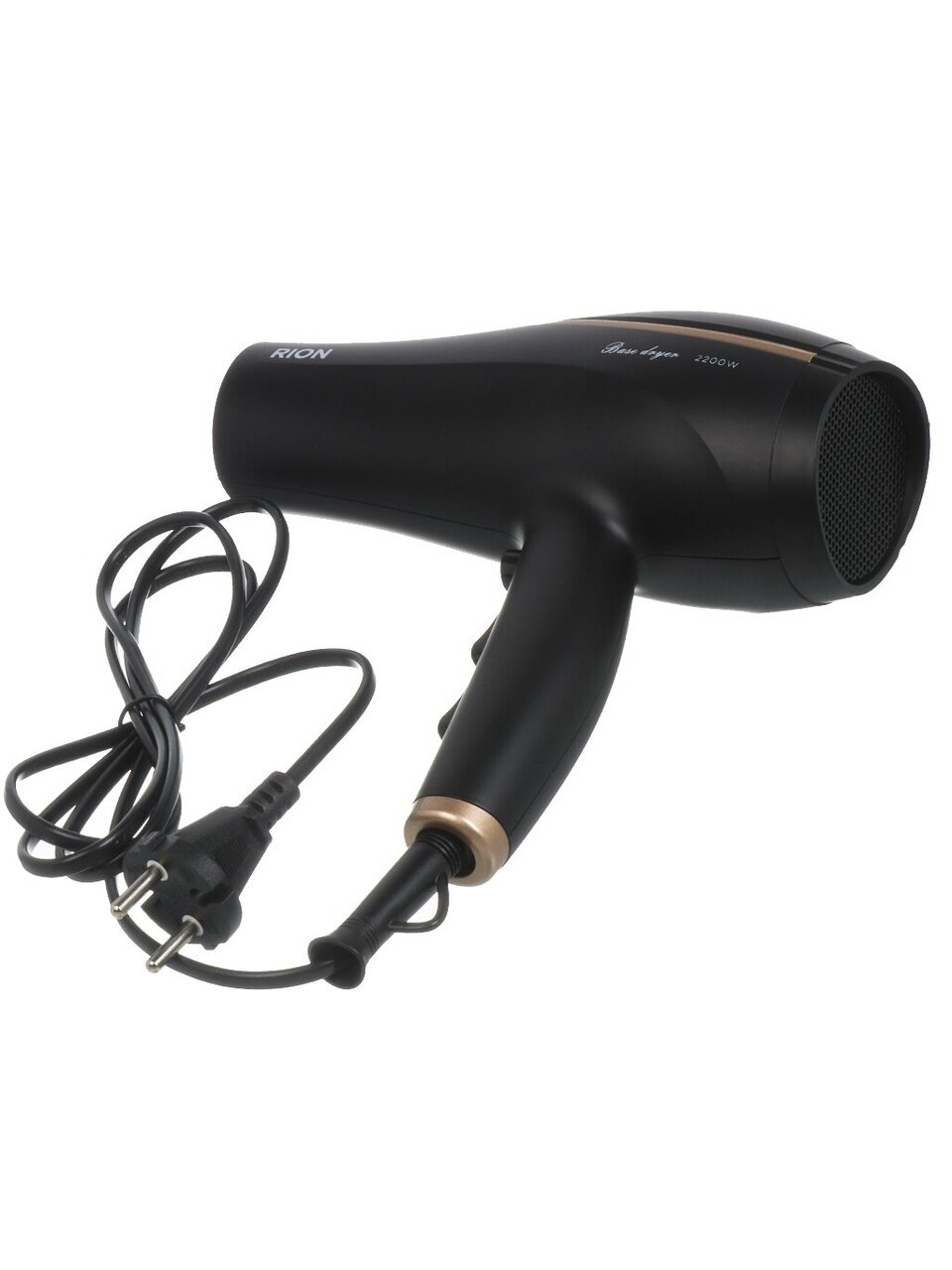 Фен Rion, TC-2849, выполнен в стильном черном цвете с изысканным пудровым акцентом, что придаёт ему особый шарм и элегантность. Несмотря на отсутствие складной ручки, его эргономичный дизайн делает использование комфортным и приятным. Этот фен не является дорожным вариантом, но его функциональность и мощность делают его идеальным выбором для домашнего использования.
