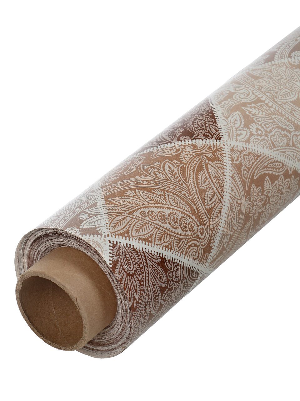 Размер рулона — 1,3 м по ширине и 20 м по длине (2000х130 см), материал — ПВХ на нетканой основе, цвет — коричневый, дизайн — орнамент, форма — рулон.