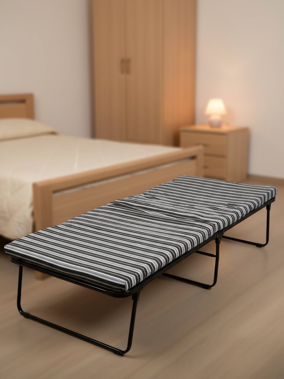 Модель "Отдых" оснащена матрасом из поролона, который придаёт дополнительный комфорт и поддерживает тело в правильном положении. Полумягкая степень жесткости способствует расслаблению и полноценному отдыху. Пружинная змейка в качестве полотна обеспечивает упругость и способствует равномерному распределению веса, что предотвращает провисание и продлевает срок службы изделия.