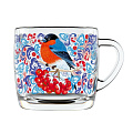 Кружка стекло 300 мл «Снегири на рябине» от Декостек — уют для дома и дачи: безопасна для СВЧ, легко моется, идеальный подарок на каждый день.