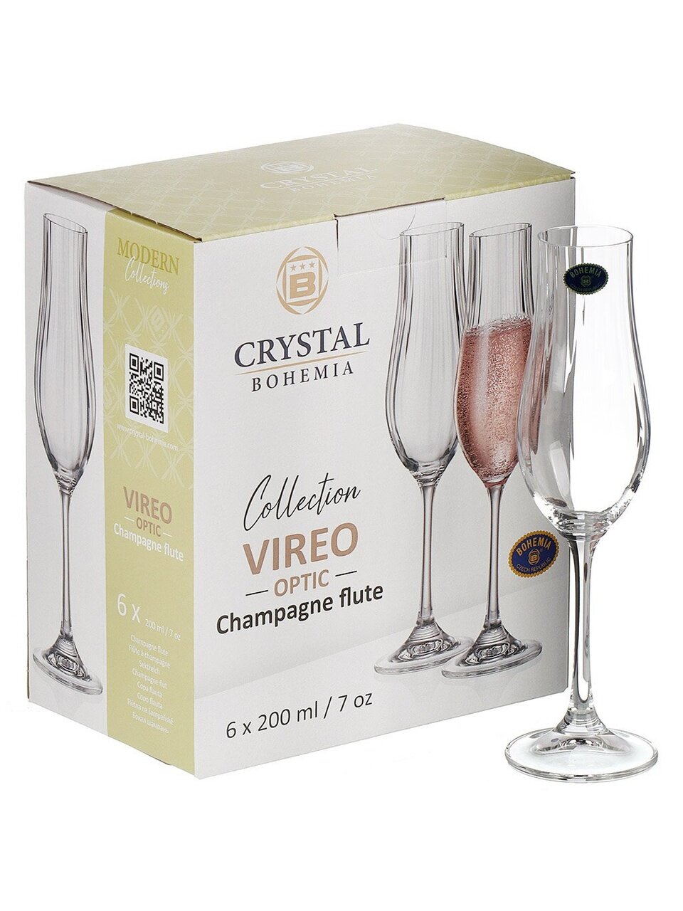 Бокалы для шампанского Bohemia Vireo optic 200 мл — набор из 6 изящных стеклянных бокалов в подарочной упаковке для стильной сервировки и особых случаев.