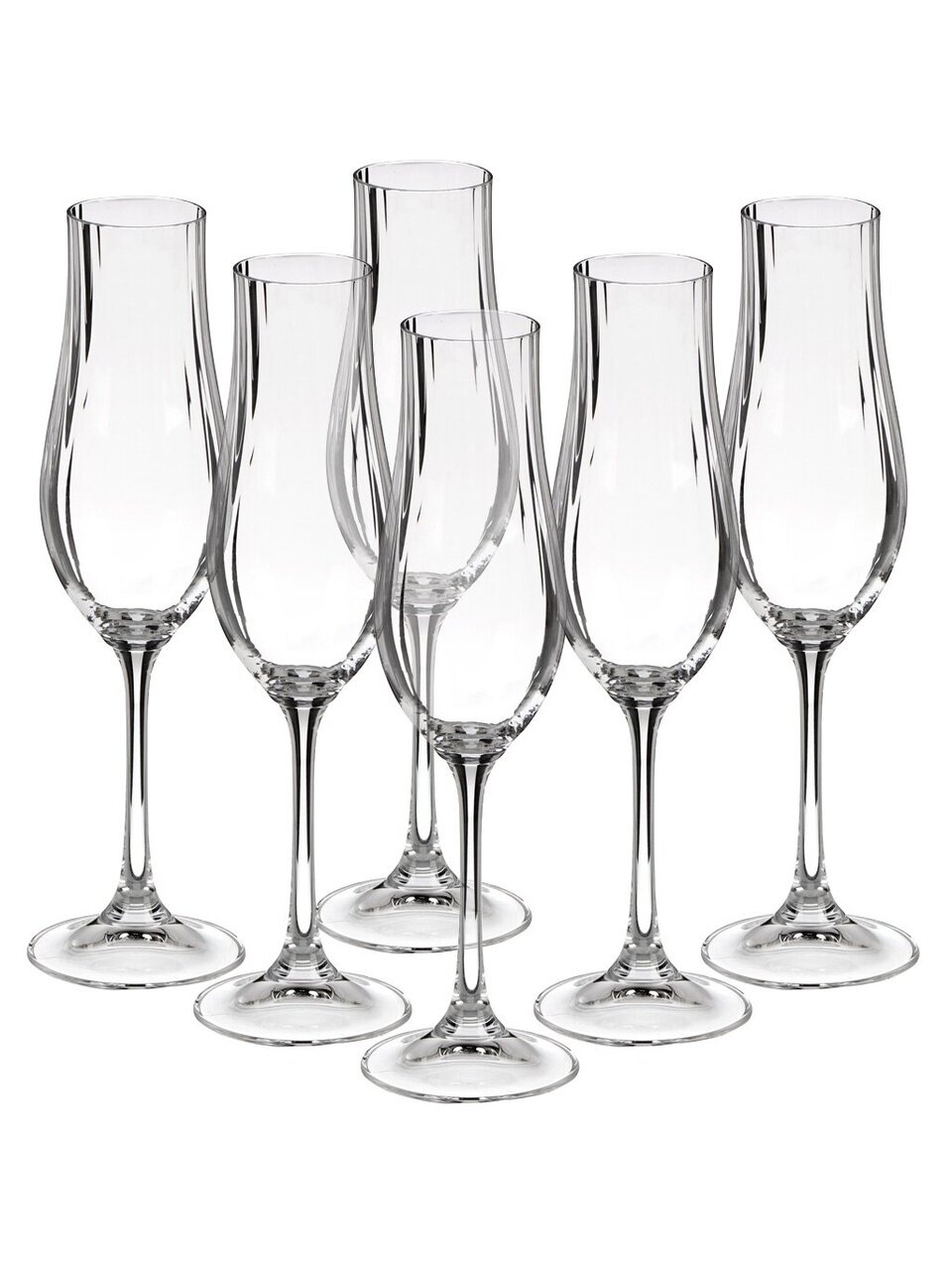 Каждый бокал рассчитан на 200 мл, что идеально для подачи шампанского и игристых вин. Материал — прозрачное выдувное стекло, форма — тюльпан.