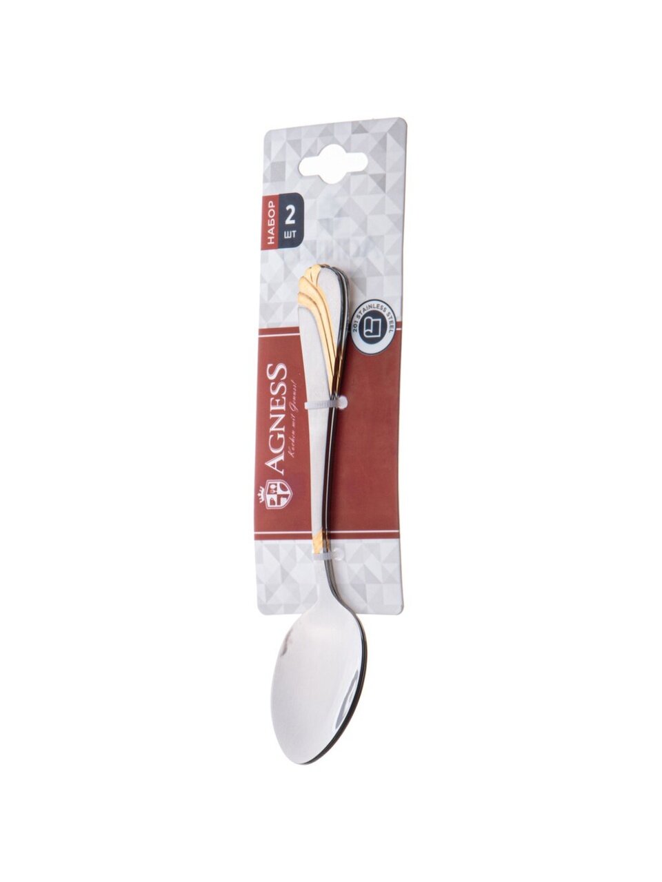 Ложки из нержавеющей стали Agness 942-131, 2 шт — стильный выбор для чая: долговечность, универсальность, оптимальная длина 14 см для ежедневного и праздничного стола.