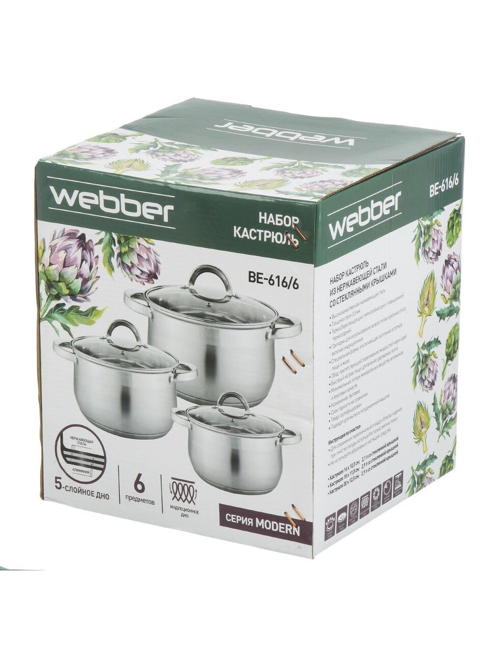 Закажите набор кастрюль Webber BE-616/6 прямо сейчас — получите универсальную посуду для любых плит с гарантией качества и быстрой доставкой!