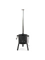 Отсутствие крышки и дополнительных аксессуаров делает эту печь простой в эксплуатации и уходе. Она идеально подходит для казанов объемом 8-10 литров, что позволяет готовить как для небольшой компании, так и для большой семьи. Печь оснащена трубой, что способствует эффективному отводу дыма и улучшает тягу, обеспечивая равномерное приготовление блюд.