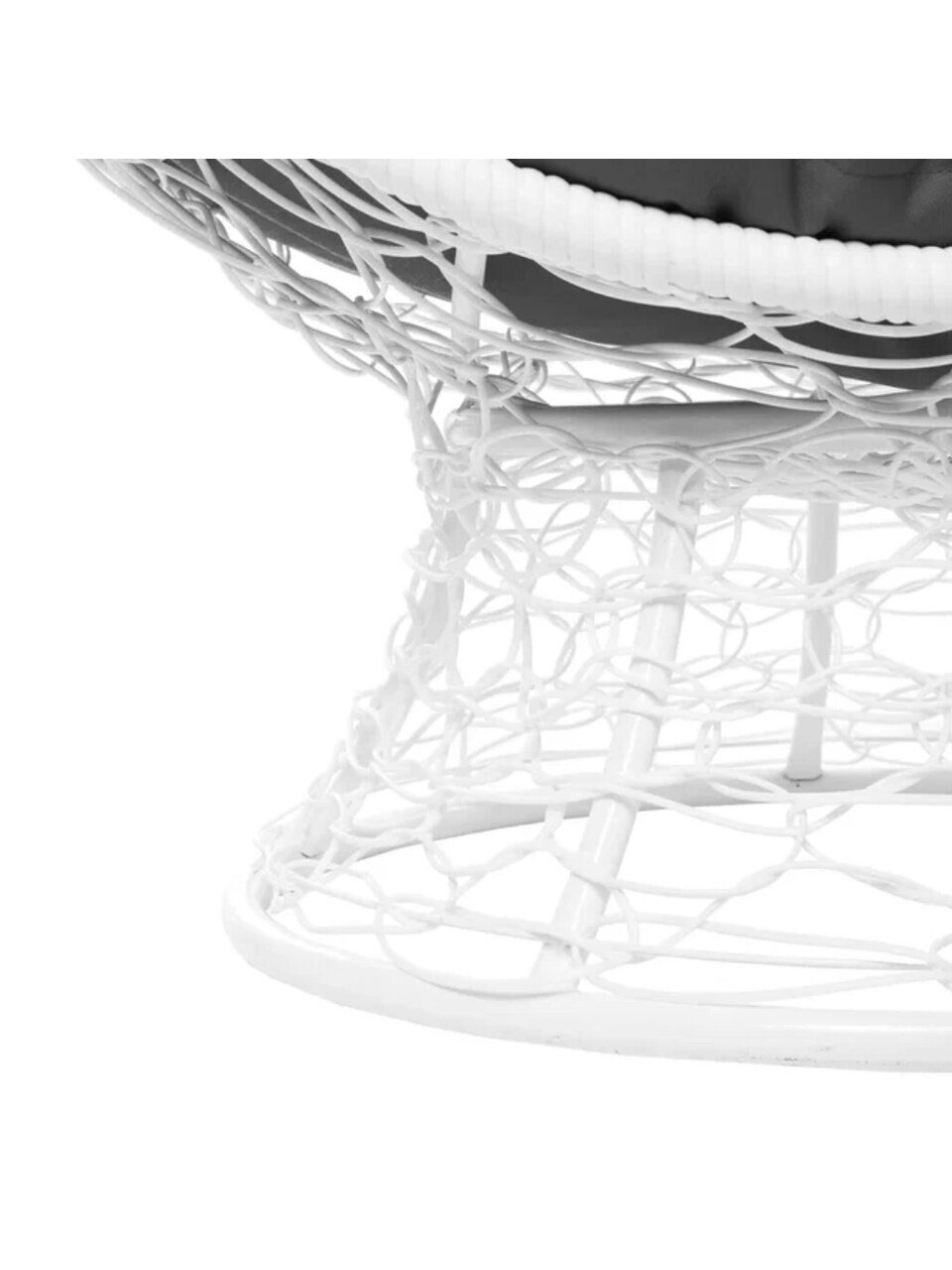 Размеры кресла 132х110 см позволяют создать персональное пространство для отдыха и релаксации, а мягкая серая подушка добавляет дополнительный комфорт. Это кресло идеально подходит для размещения в гостиной, на террасе или в саду, создавая атмосферу расслабленности и гармонии.