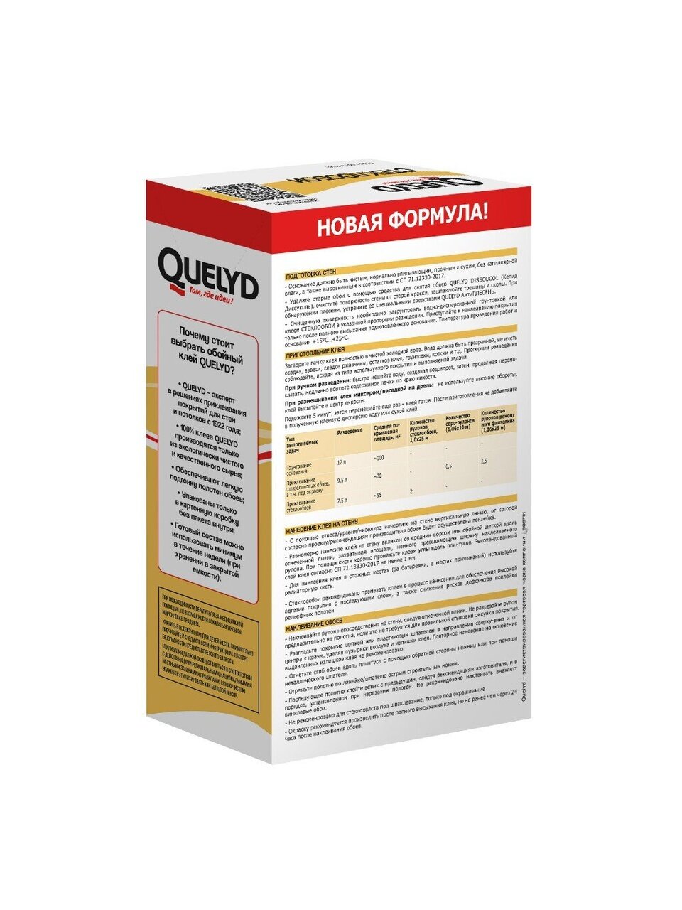 Если вы думаете, что лучше для поклейки флизелиновых обоев — готовый или сухой состав, выбирайте Quelyd: его легко развести, а экономичная упаковка позволяет покрыть большие площади с минимальными расходами.