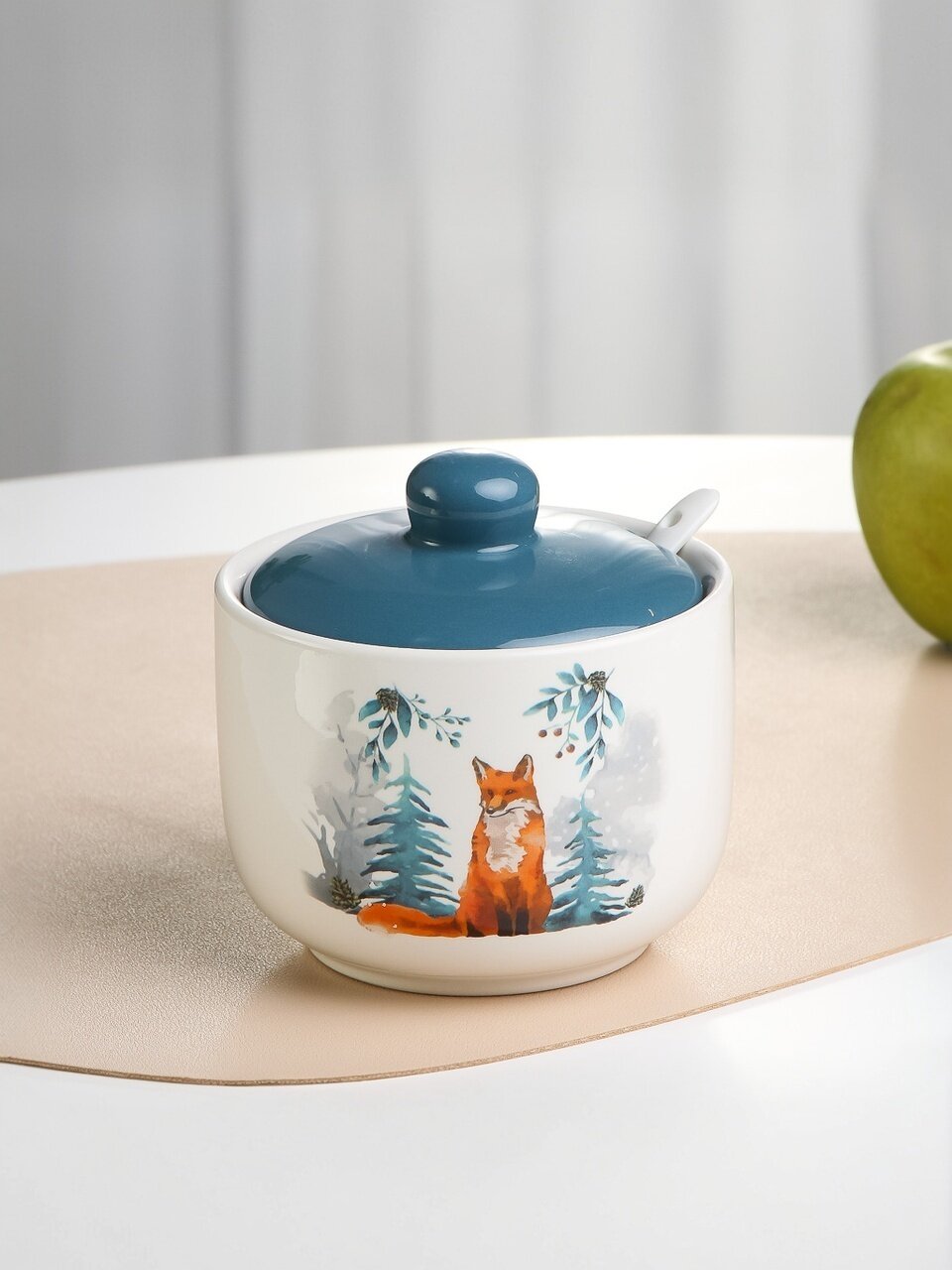 Сахарница 500 мл из доломита с ложкой Daniks Лисичка — стильное решение для кухни и дачи: хранение сахара без комков, удобство и оригинальный дизайн.