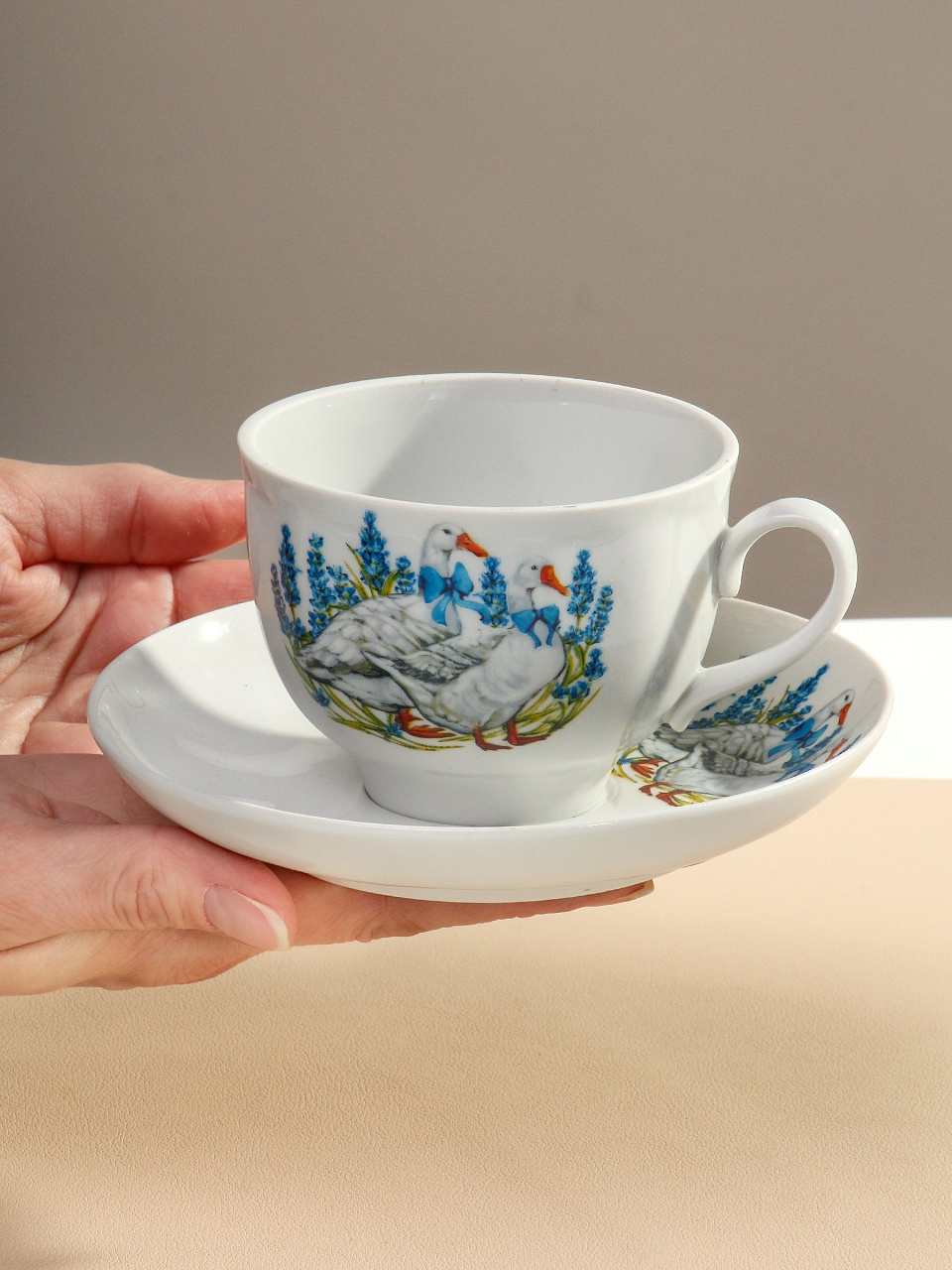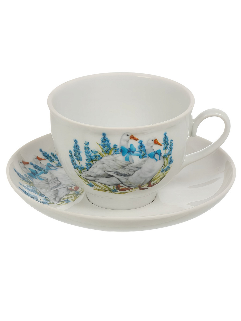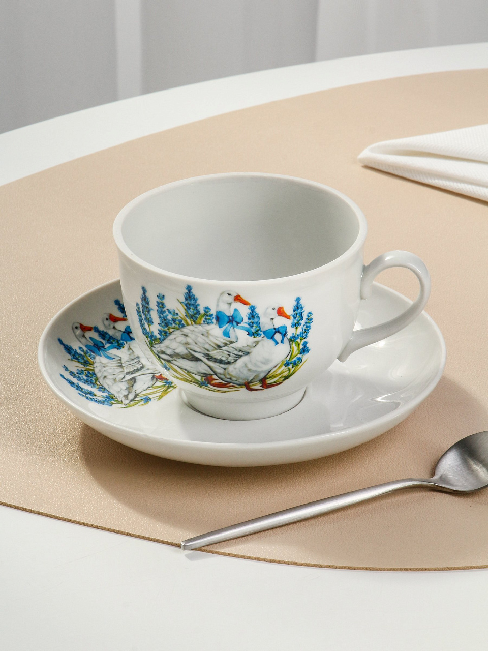 Чайная пара Daniks «Гранатовый, Гуси», 275 мл — стильный фарфор для ценителей уюта: идеальный подарок и комфорт для дома или дачи, подходит для СВЧ и посудомойки.