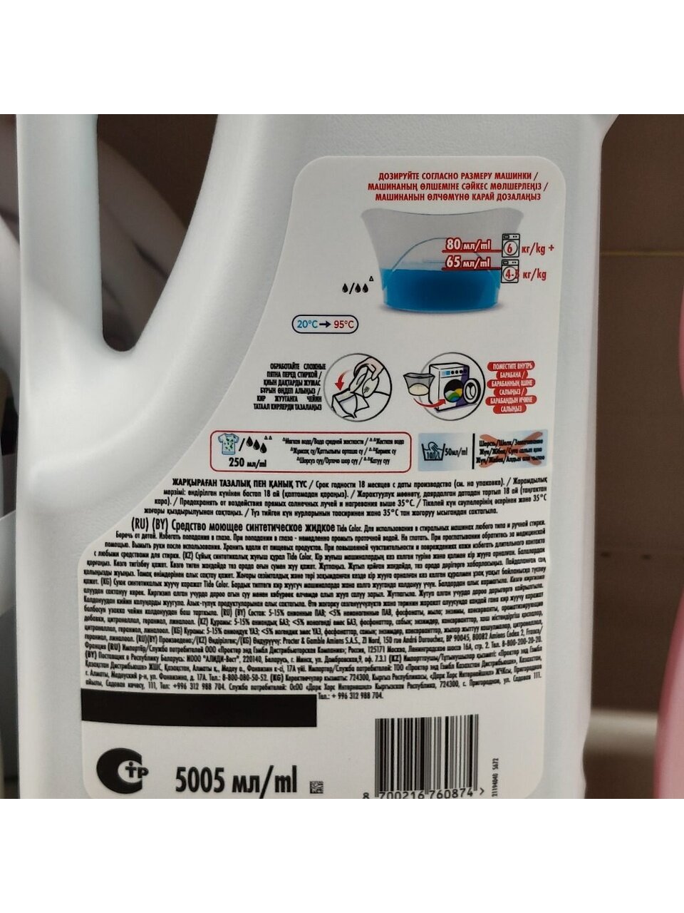 Откройте для себя идеальное решение для стирки цветного белья — гель для стирки Tide, 5.005 л, Color. Этот гель гарантирует безупречную чистоту и сохранение яркости ваших любимых вещей. Ваша одежда останется свежей и насыщенной, как будто она только что из магазина.