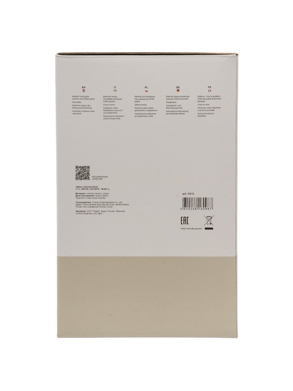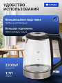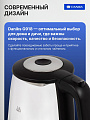 Безопасность устройства гарантируется функцией автоотключения и защитой от включения без воды, что исключает риск поломки и делает эксплуатацию максимально комфортной. Надежная закрытая спираль обеспечивает равномерный нагрев и долгий срок службы — до 15000 циклов кипячения, что особенно важно для ежедневного использования. Вращение подставки на 360° обеспечивает свободу установки чайника в любом положении, делая его использование удобным как для правшей, так и для левшей.