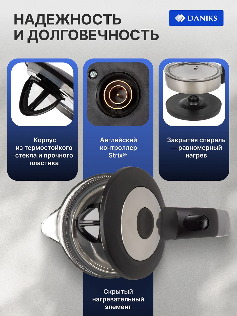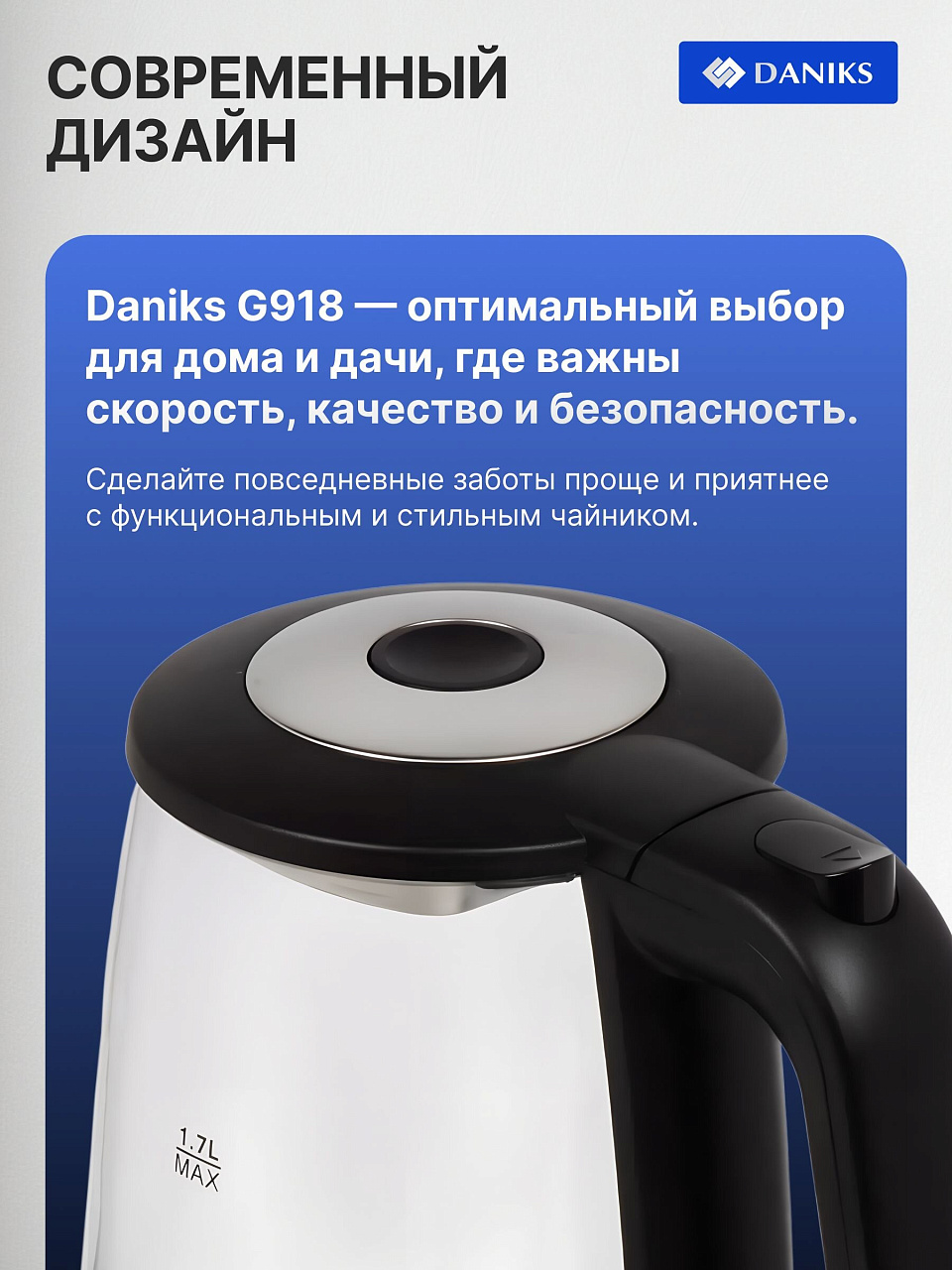 Покупка электрического чайника Daniks G918 — это выгодное вложение в комфорт и безопасность дома. Экономия времени на приготовление напитков, долговечность и простота ухода позволят ежедневно наслаждаться любимым чаем или кофе без лишних хлопот. Такой чайник станет незаменимым помощником на кухне, обеспечивая стабильную работу и стильный внешний вид.