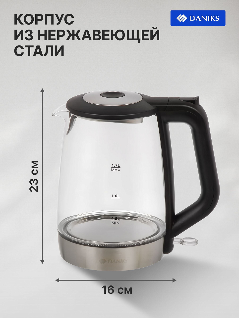Электрический чайник Daniks G918 — современное решение для быстрой и безопасной организации чаепития дома или на даче. Благодаря стильному сочетанию стекла и черного пластика, чайник гармонично впишется в любой интерьер кухни, акцентируя внимание на деталях и подчеркивая вкус владельца. Удобный объем 1.7 л позволяет за один раз вскипятить воду для всей семьи или компании гостей, а мощность 2200 Вт обеспечивает мгновенный результат без лишнего ожидания. Прозрачный корпус из стекла позволяет легко контролировать уровень воды и оценить чистоту прибора.