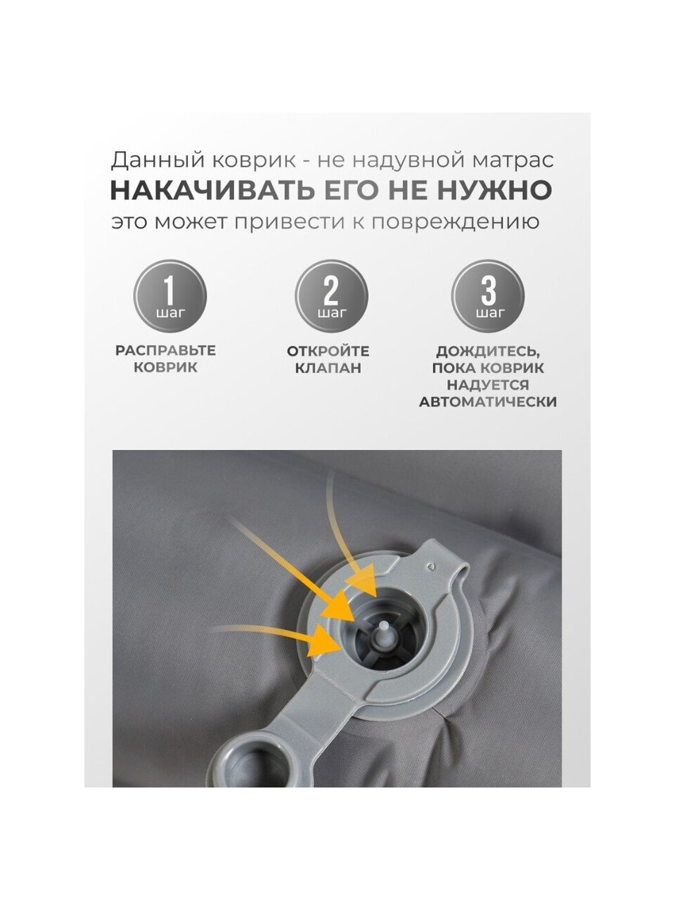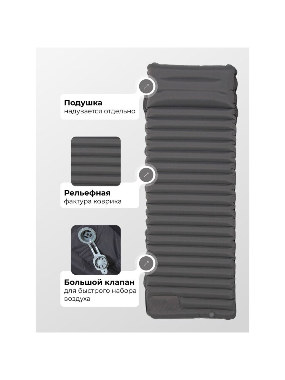 Самонадувающийся коврик 190х65 см – идеальный выбор для любителей комфортного отдыха на природе, кемпинга, путешествий и дачного времяпрепровождения. Компактный и легкий, он создан для ценителей практичности и удобства. Современный материал – нейлон – обеспечивает прочность, устойчивость к влаге и легкость в уходе. Серый цвет гармонично впишется в любой интерьер палатки или станет стильным аксессуаром для пикника.
