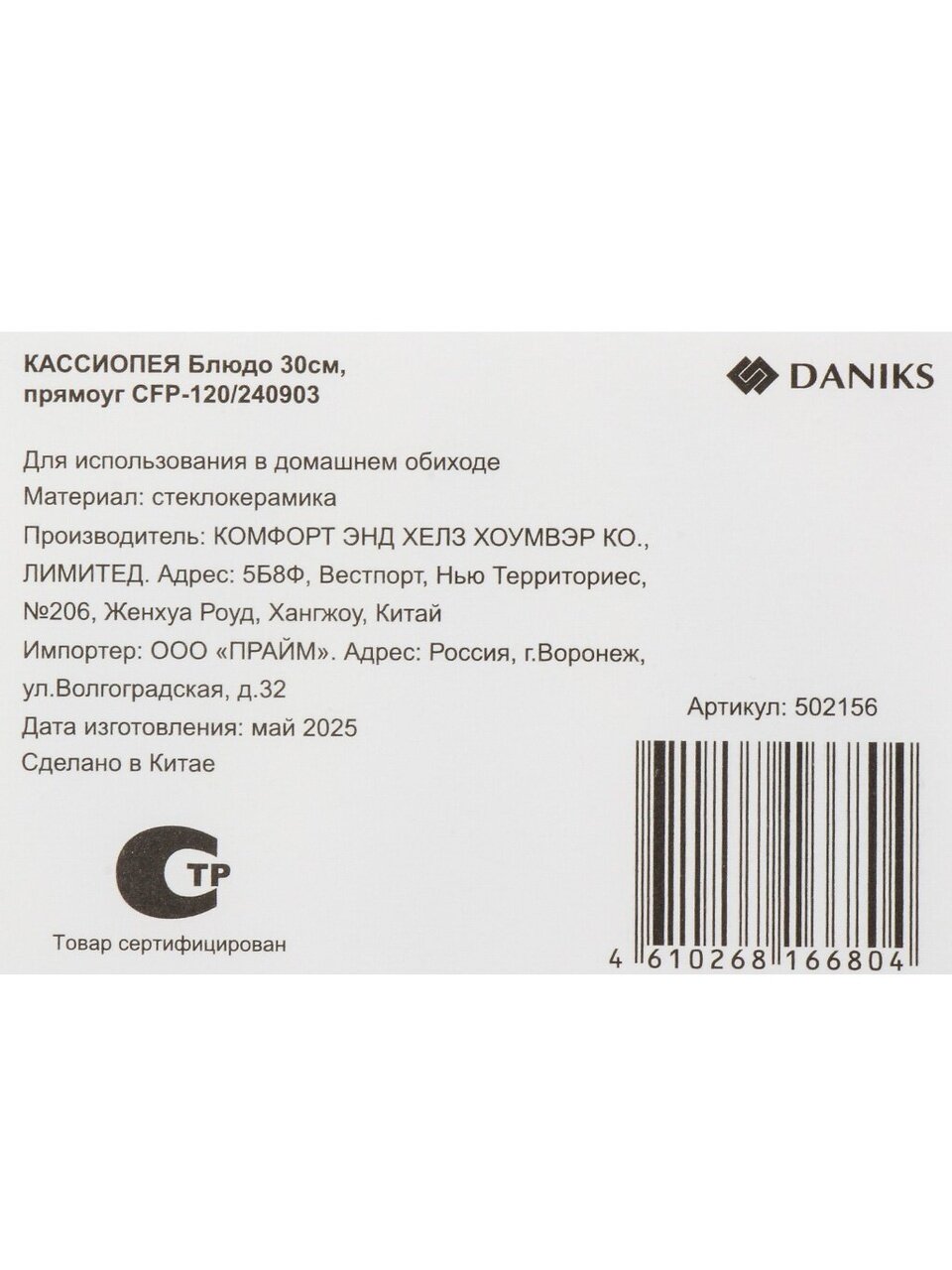 Блюдо стеклокерамика 30см, прямоугольное, Кассиопея Daniks — это современное решение для сервировки и приготовления. Благодаря высокопрочной стеклокерамике, изделие выдерживает резкие перепады температур, не трескается при использовании в духовке, микроволновке или холодильнике. Если вы ищете, как выбрать удобное блюдо для запекания или что лучше для подачи горячих блюд на стол, обратите внимание на эту модель: она не впитывает запахи, устойчива к царапинам и легко моется вручную или в посудомоечной машине.