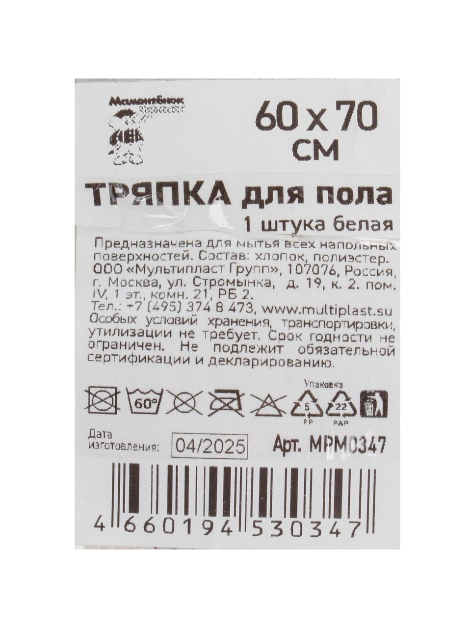 Салфетка для пола Мамонтенок чистолюб — идеальный выбор для поддержания чистоты в доме. Белая салфетка размером 0,6х0,7 м эффективно справляется с уборкой благодаря натуральному хлопку, обеспечивая бережное отношение к напольным покрытиям. Простота ухода и универсальность делают её незаменимым помощником в быту.
