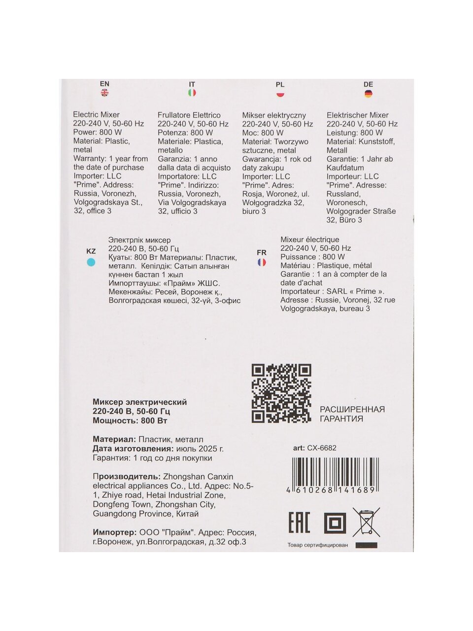Мощный ручной миксер Daniks CX-6682: 6 скоростей, турбо-режим, 800 Вт — быстрое и однородное смешивание для идеальных блюд дома и на даче.