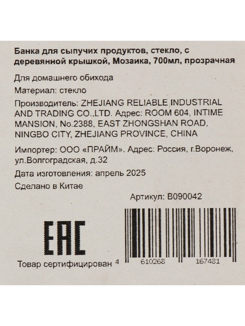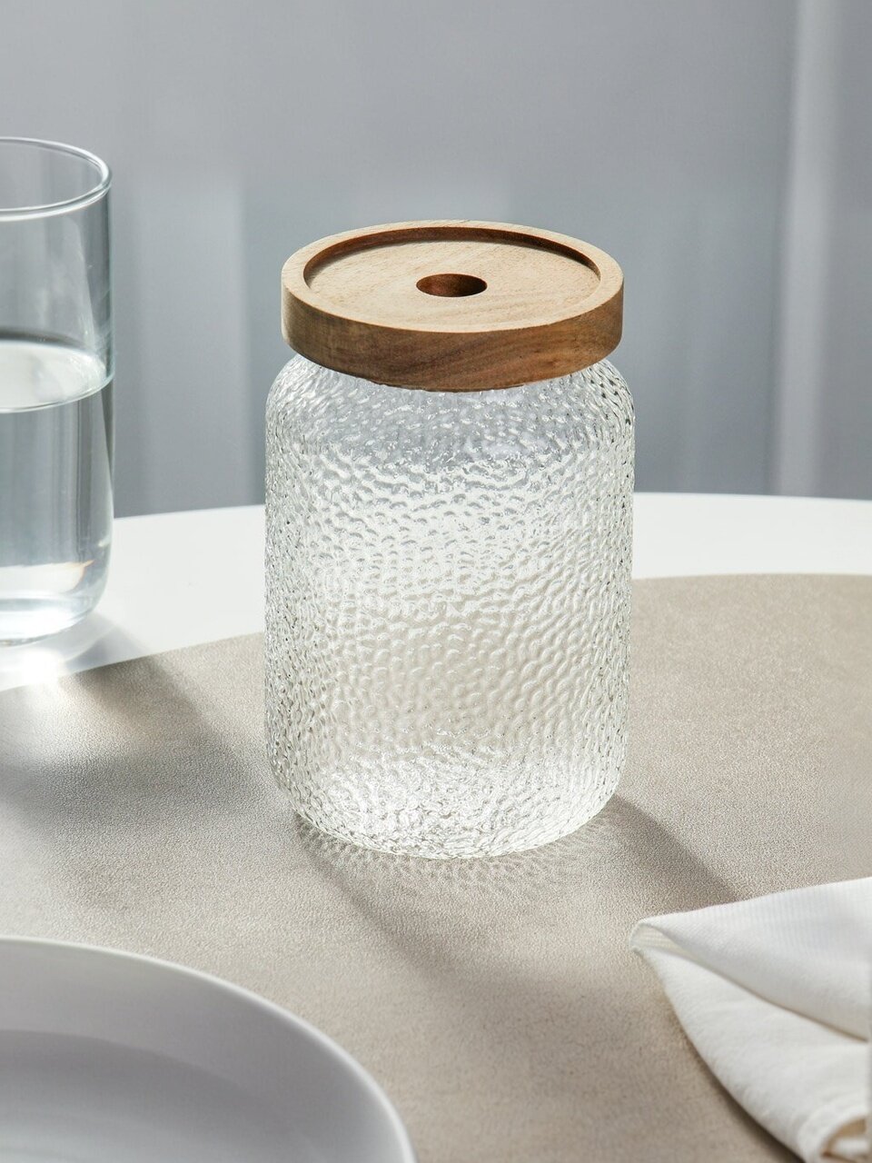 Банка для сыпучих продуктов из прозрачного стекла объемом 0.7 л с деревянной герметичной крышкой — стильное и практичное решение для хранения круп, сахара, чая или специй. Рельефный дизайн "Мозаика" украсит кухню и обеспечит удобство в использовании. Прозрачность позволяет легко контролировать остатки содержимого. Стекло подходит для использования в СВЧ. Отличный выбор для поддержания порядка и свежести продуктов.