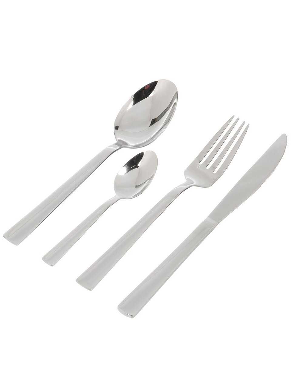 В комплекте 24 предмета из нержавеющей стали: рассчитано на 6 персон для сервировки основных и чайных блюд. Сталь 410.