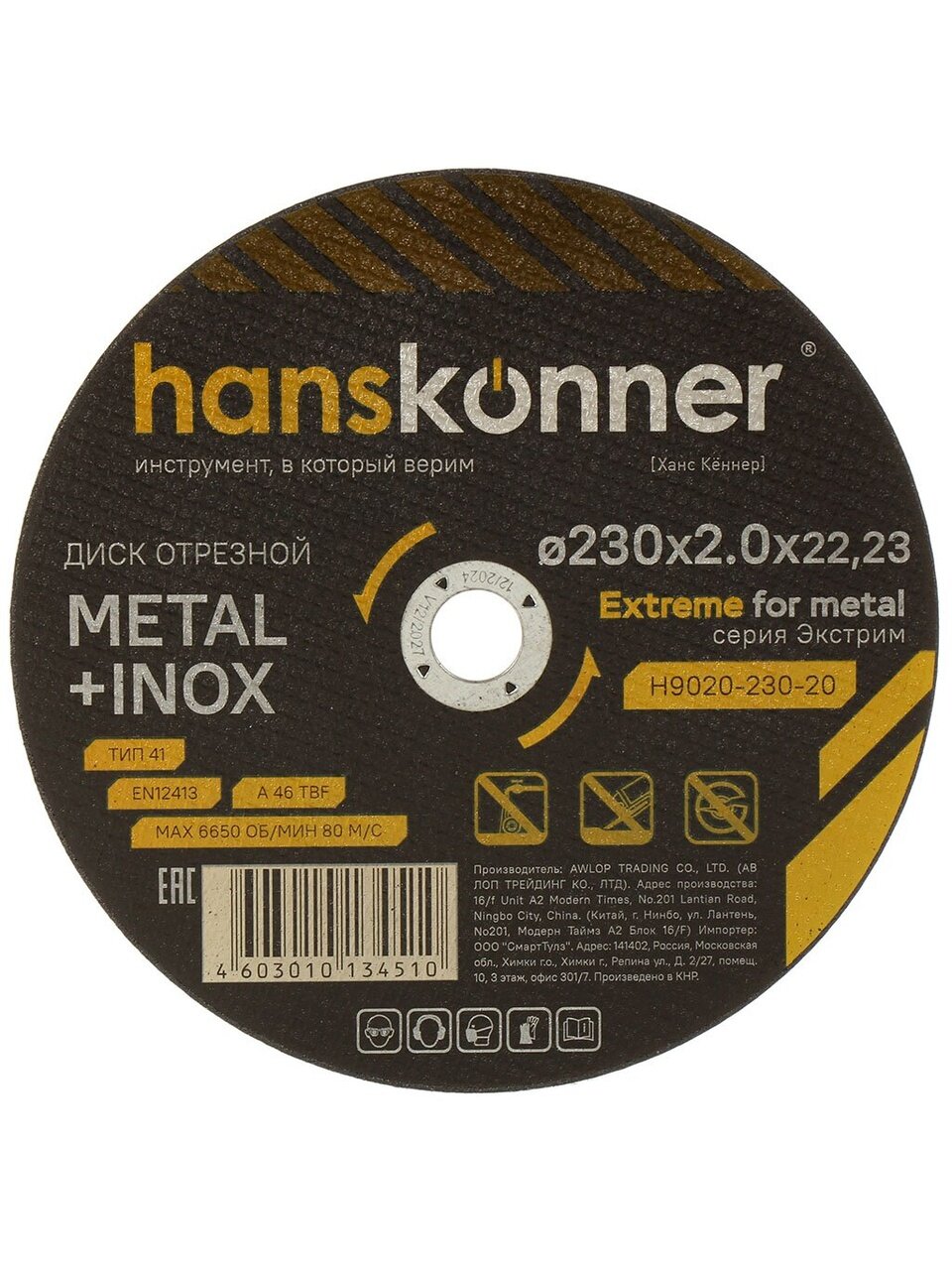 Диск отрезной по металлу Hanskonner d230х2 мм с посадочным диаметром 22.23 мм — надежный инструмент для быстрой и точной резки металлических изделий. Высокое качество исполнения обеспечивает стабильную работу и долгий срок службы. Идеальное решение для домашних и дачных работ, требующих аккуратного и эффективного результата.