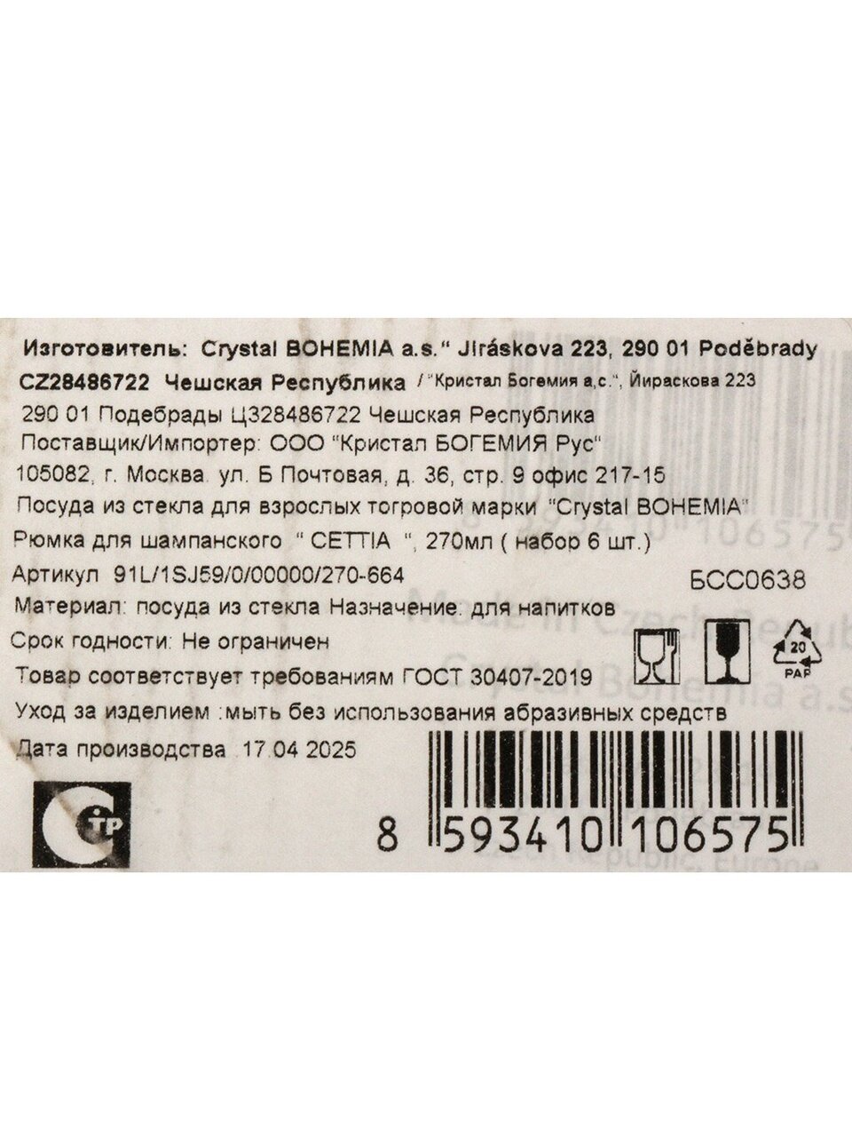 Премиальный набор бокалов для шампанского Bohemia Cettia 270 мл (6 шт): идеальный подарок и стильная сервировка стола без риска потери блеска после мытья в посудомоечной машине.