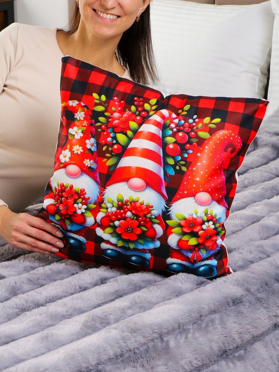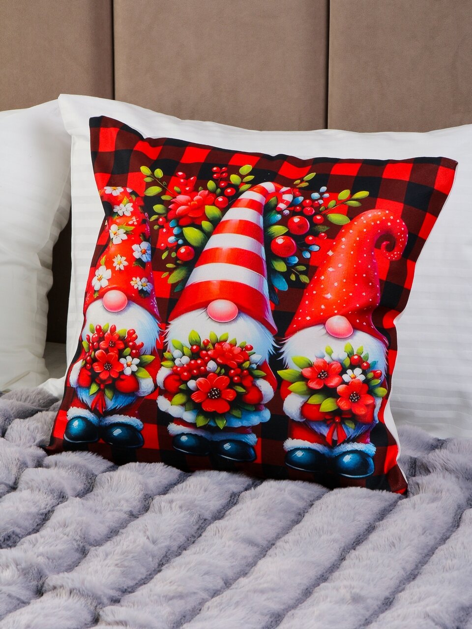 Декоративный чехол на подушку «Гномики» 45×45 см — уютный акцент для новогоднего интерьера, практичный подарок и простой способ обновить дом без лишних затрат.