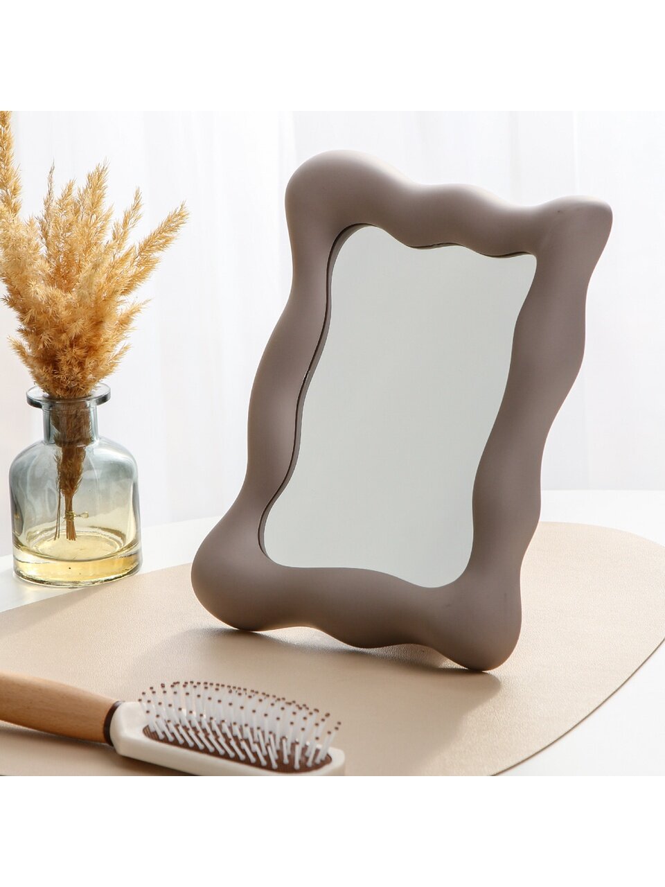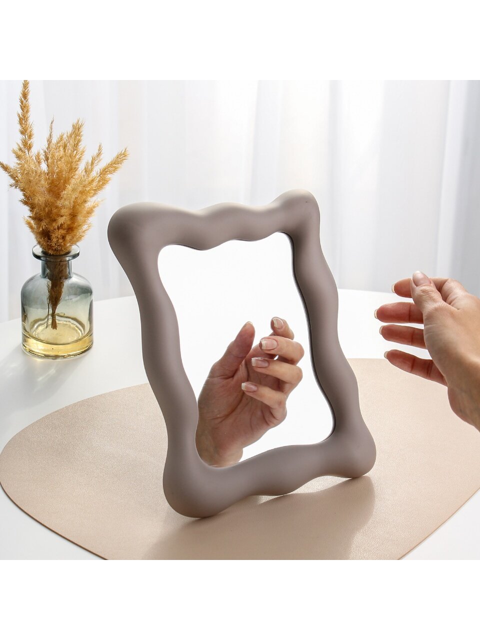Стильное настольное зеркало 17.5х23.5 см в матовой серо-бежевой оправе: идеальный аксессуар для макияжа, ухода и подарка — по выгодной цене!