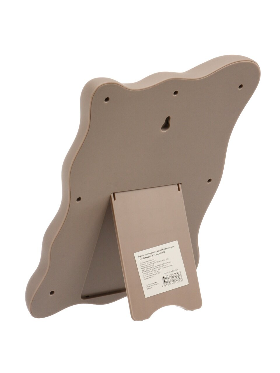 Размер зеркала — 17.5х23.5 см. Благодаря компактной форме и легкой пластиковой оправе, оно отлично подходит для небольших столов, подоконников или полок.