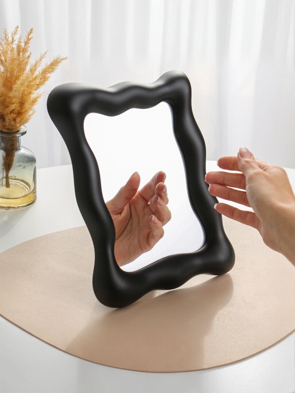 Стильное настольное зеркало 17.5х23.5 см в матовой чёрной оправе: компактное решение для макияжа, ухода и интерьера по выгодной цене.