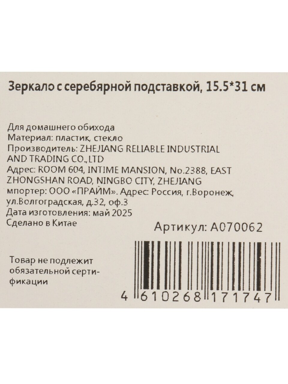 Из какого материала выполнено зеркало?
