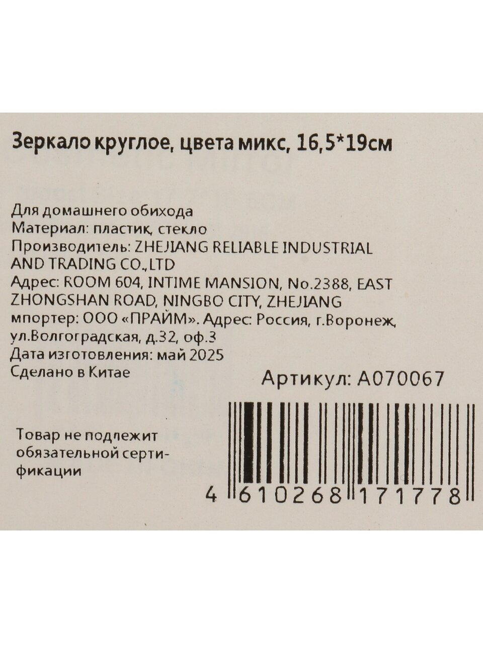 Тип: настольное. Размер: 16.5х19 см. Форма: круглая. Материал: пластик. Цвет: в ассортименте (без выбора). Страна продавца: Китай. Артикул: A070067.