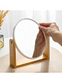 Выбирайте зеркало с оптимальным размером (18х20.5 см), без увеличения для естественного отражения. Эта модель устойчива благодаря деревянной подставке и подходит для ежедневного использования.