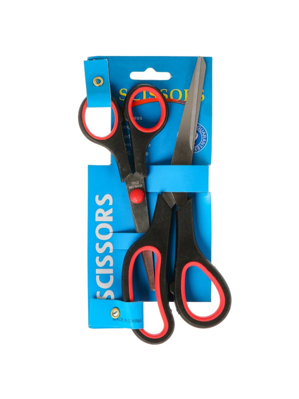 В комплект входят ножницы 19,5x7,3 см и 14x6 см — подходят для резки бумаги, ткани, упаковки и мелких работ.