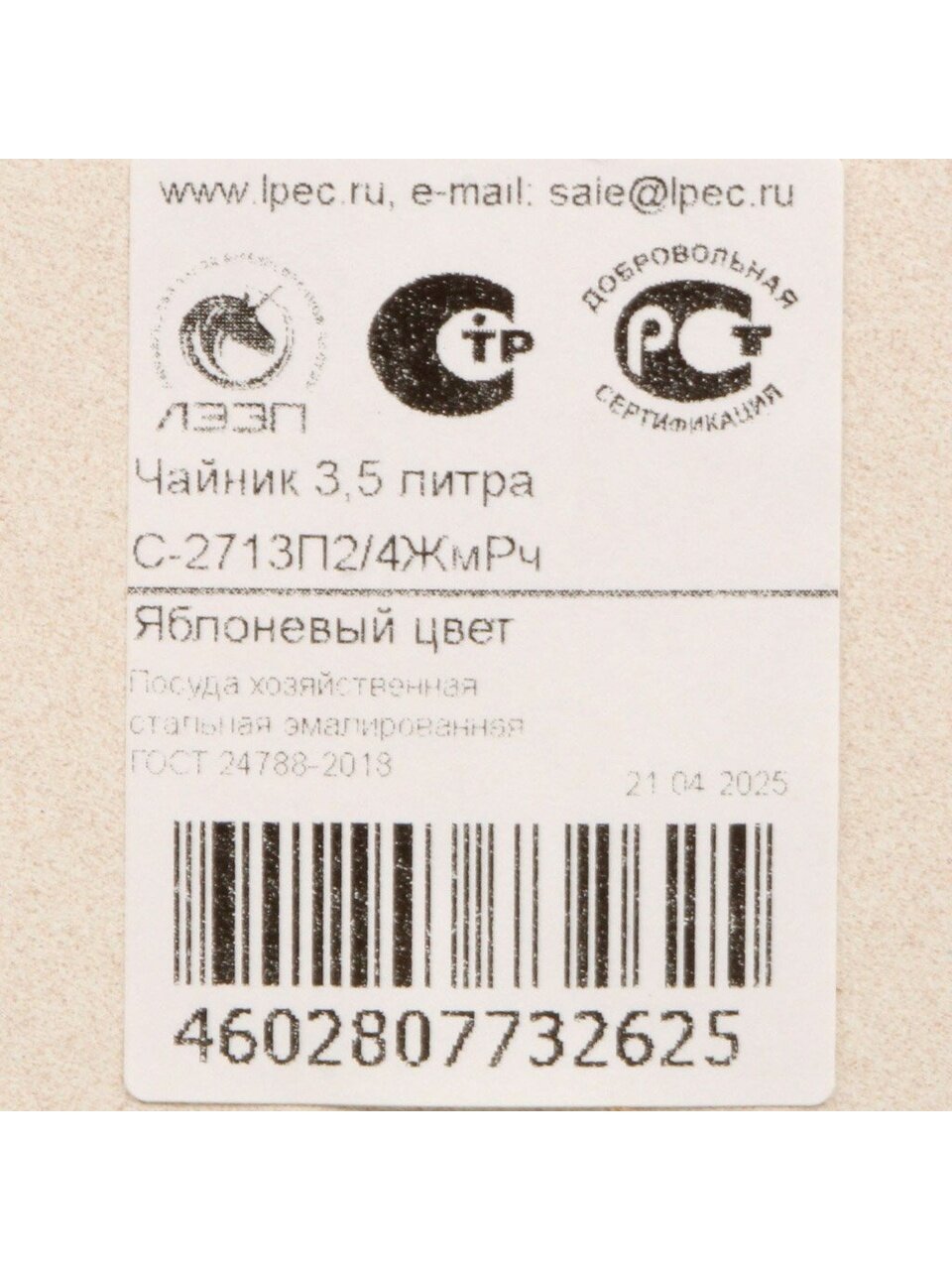 Чайник 3.5 л, ЛЗЭП, Яблоневый цвет — идеальный выбор для современной кухни, где ценятся красота, практичность и надежность. Эмалированный корпус из стали обеспечивает прочность и долговечность, а стильный белый цвет с ярким декором из коллекции "Яблоневый цвет" станет гармоничным акцентом в любом интерьере. Объем 3.5 литра позволяет удобно кипятить воду для всей семьи или гостей, что особенно актуально для больших компаний и уютных семейных чаепитий.