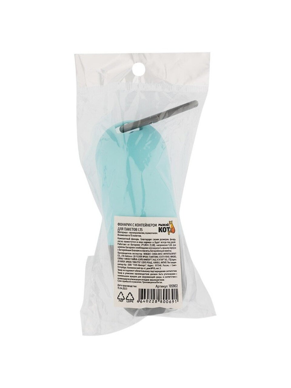 Фонарик с контейнером для пакетов Рыжий кот — удобное решение для дома, дачи и прогулок. Компактный размер 10.8х4 см позволяет легко носить аксессуар с собой. Материал: PP, полиэтилен, что гарантирует прочность и легкость. В комплекте 15 пакетов и батарейки 3хLR44, не требуется дополнительных покупок.