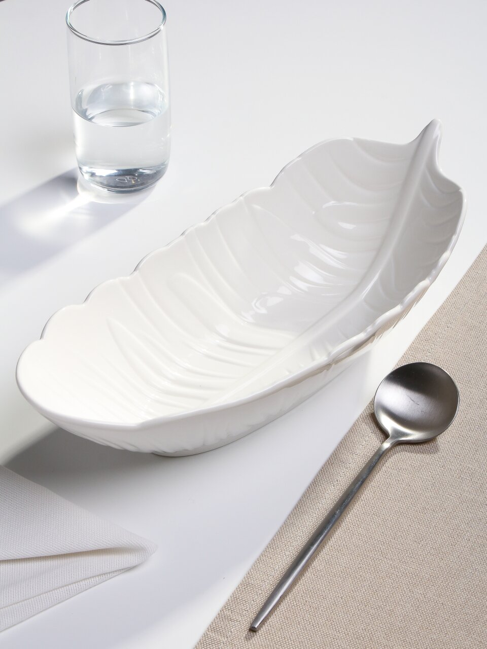 Салатник из керамики «Белый лист» 35х14х8 см: стиль прованс для сервировки, подходит для дома, дачи, подарка. Лёгкий уход, современный дизайн.