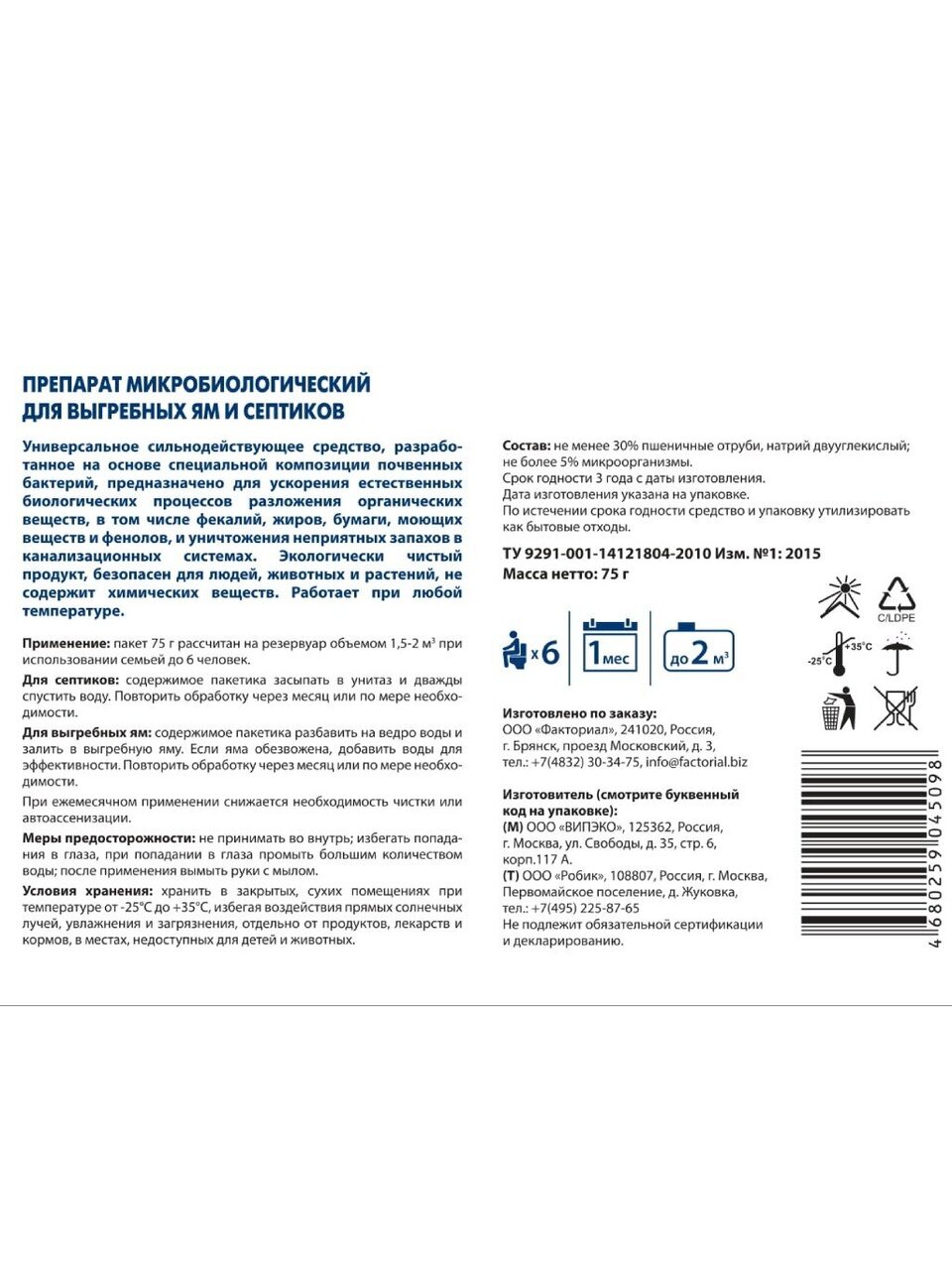 Биосостав для выгребных ям и септиков Agros — эффективное решение для поддержания чистоты и свежести в загородном доме. Благодаря содержанию живых микроорганизмов, средство способствует быстрому разложению отходов и выступает в роли нейтрализатора запахов. Покупка этого состава обеспечивает долгую работу выгребных ям и септиков без неприятных запахов и частых чисток.