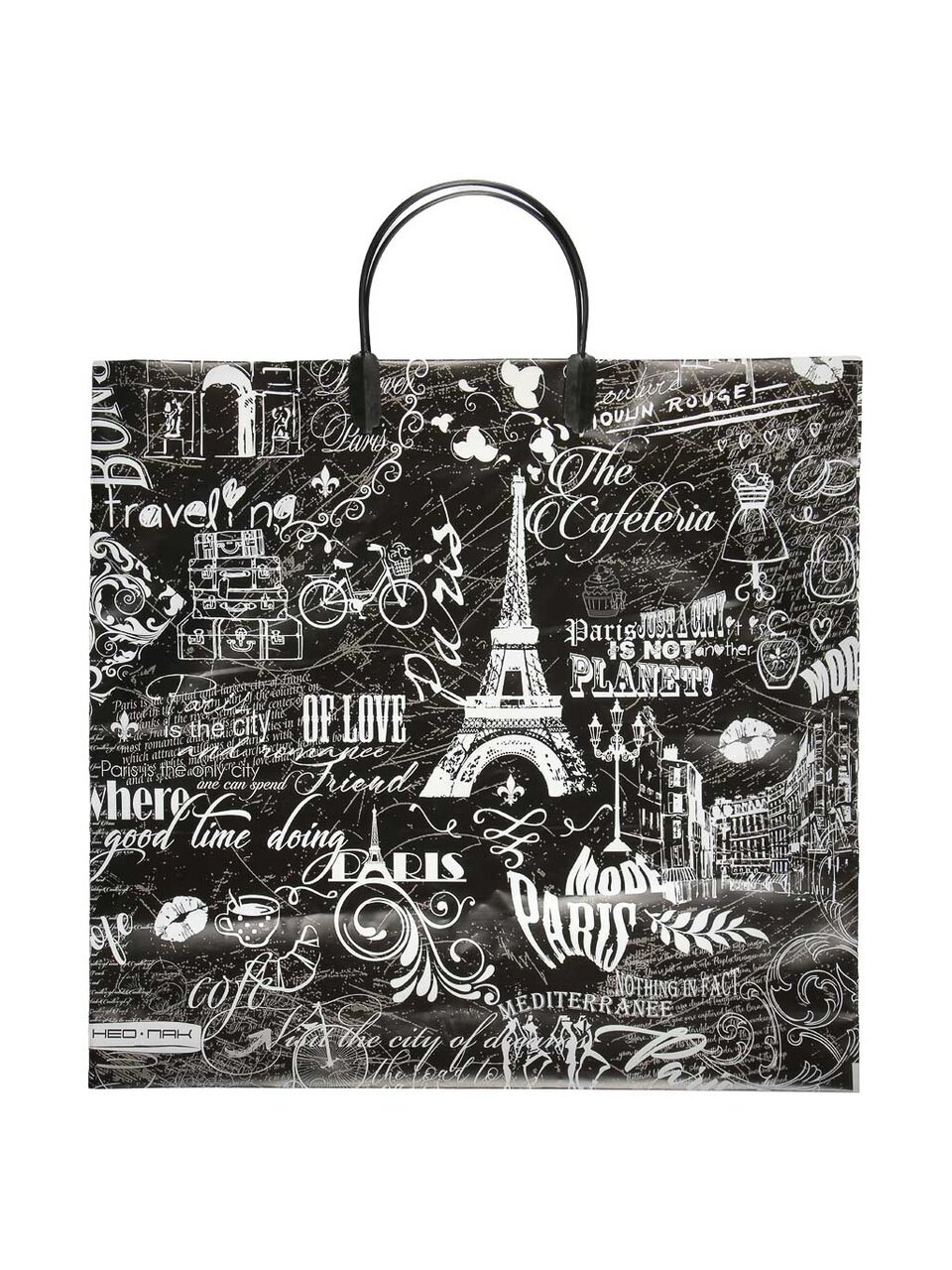 Он прочнее за счет увеличенной плотности, имеет удобные пластиковые ручки и стильную фотопечать, что делает его подходящим для подарков, хранения вещей и многократного использования.