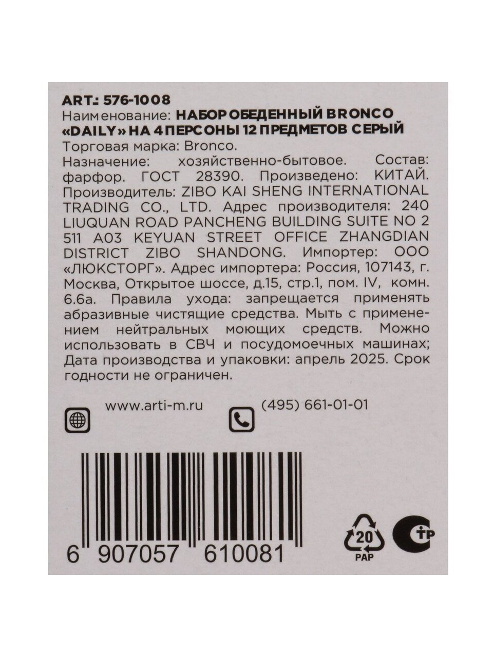 Сервиз столовый фарфор Bronco Daily 12 предметов на 4 персоны — стильный подарок и практичное решение для дома и дачи. Устойчив к сколам, подходит для СВЧ и посудомоечной машины.