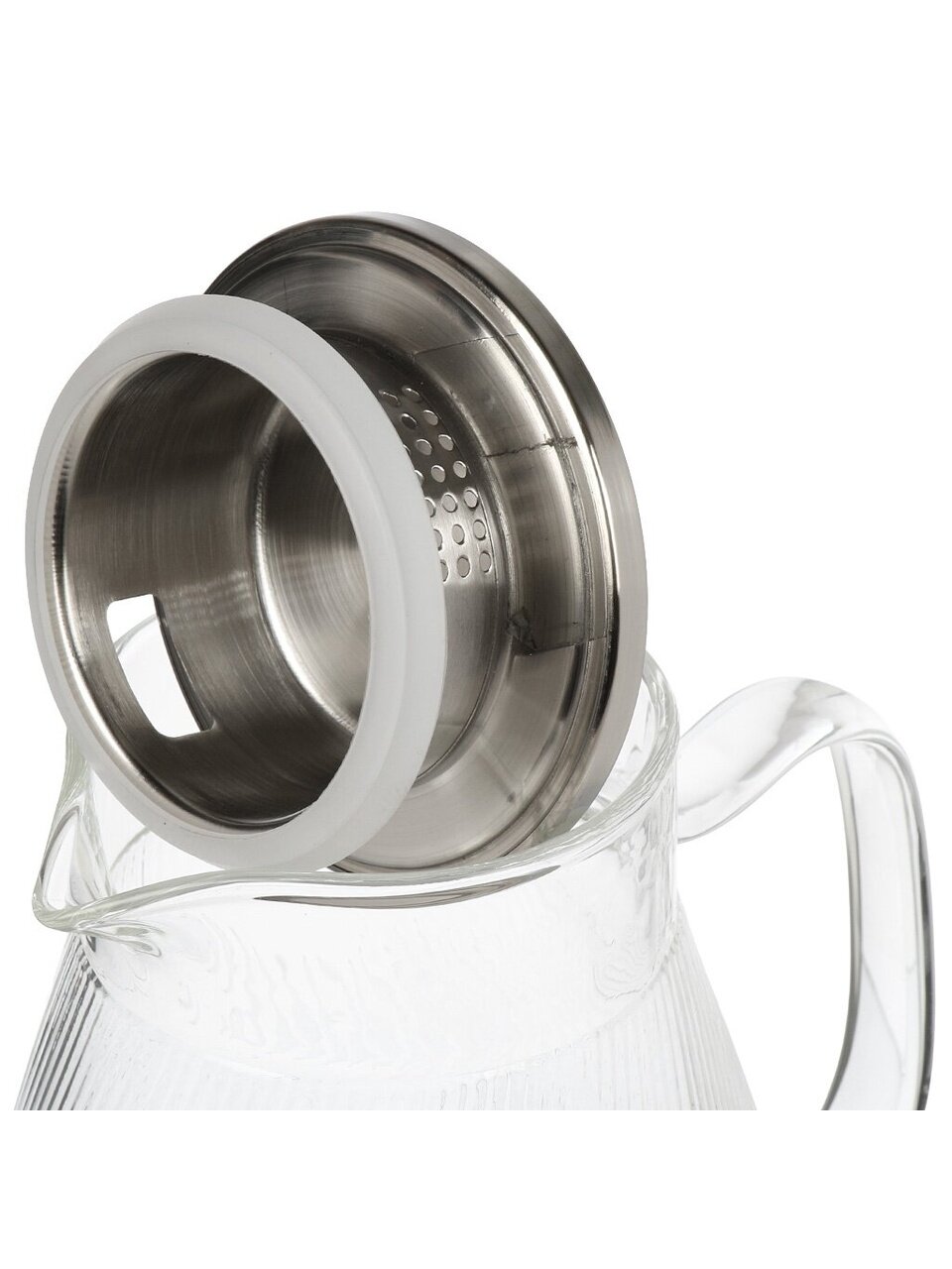 Кувшин вмещает до 1 литра жидкости, комплектуется крышкой с фильтром, предотвращающим попадание крупных частиц в напиток. Цвет — бесцветный, легко вписывается в любой интерьер.