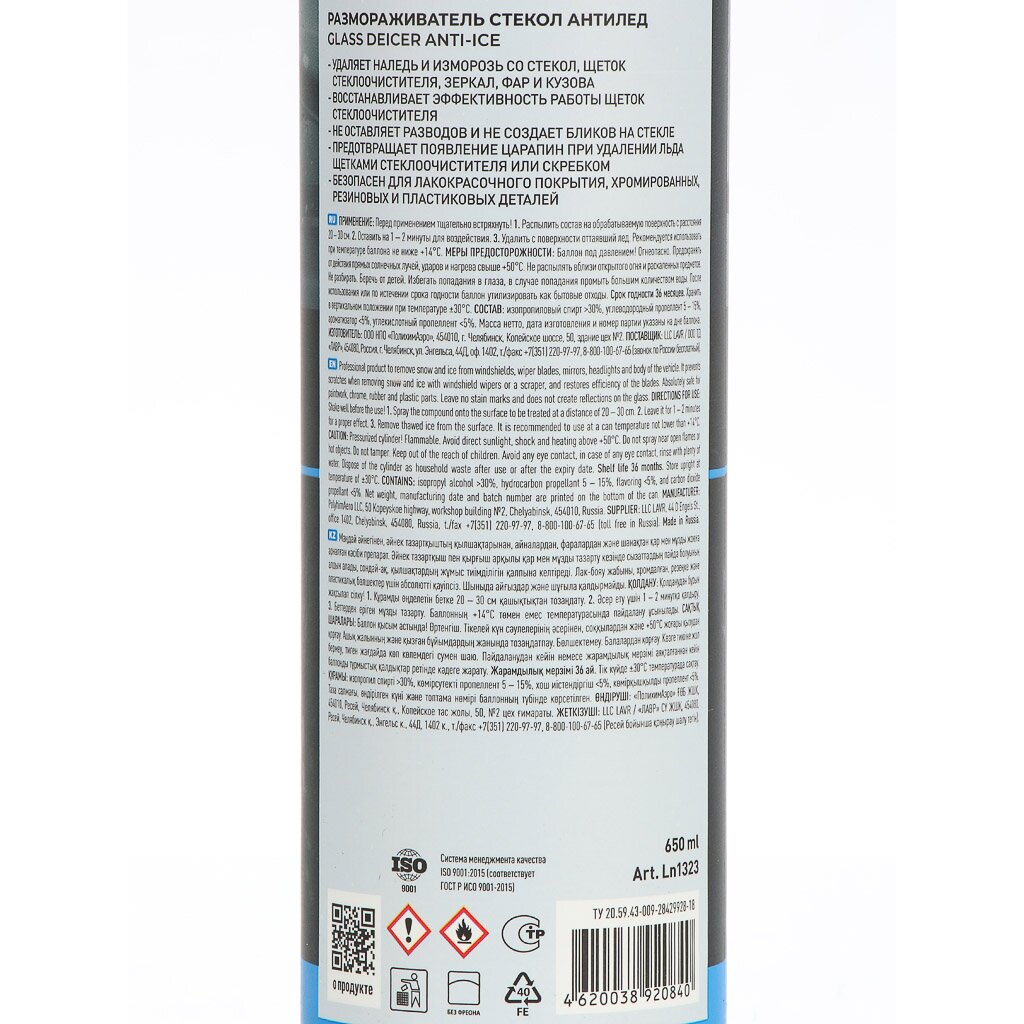 Быстрое и эффективное решение для зимы: размораживатель стекол Антилед LAVR, аэрозоль 650 мл — защита от наледи для авто и дома за 1 минуту.