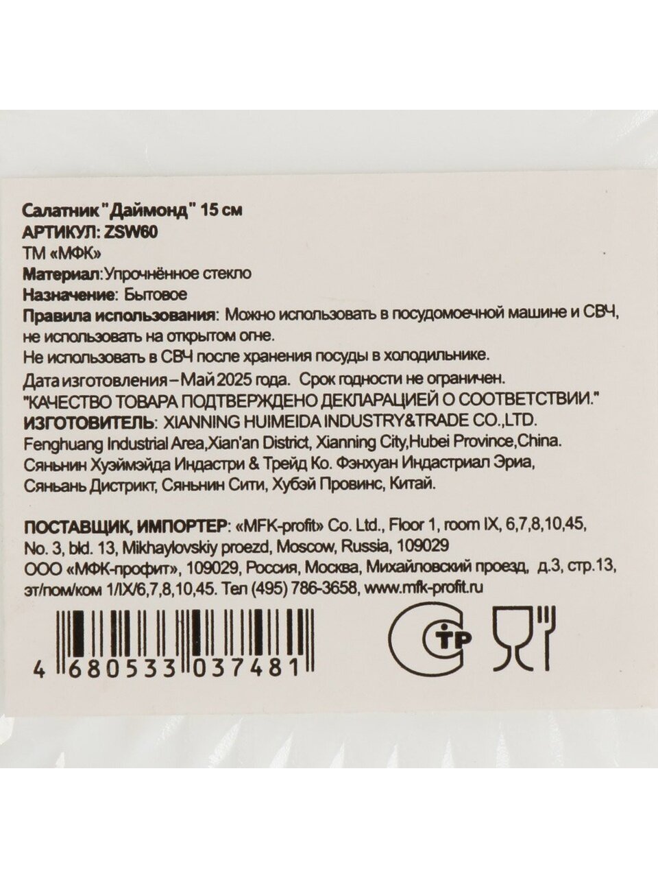Стильный салатник из стеклокерамики 0,5 л МФК Даймонд — универсальное решение для сервировки, повседневного и праздничного стола. Практичный выбор для дома и дачи.