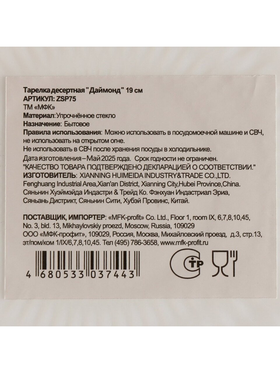 Десертная тарелка МФК Даймонд 19 см — стильное решение для сервировки: ударопрочная стеклокерамика, подходит для СВЧ и посудомоечной машины, выгодная цена.